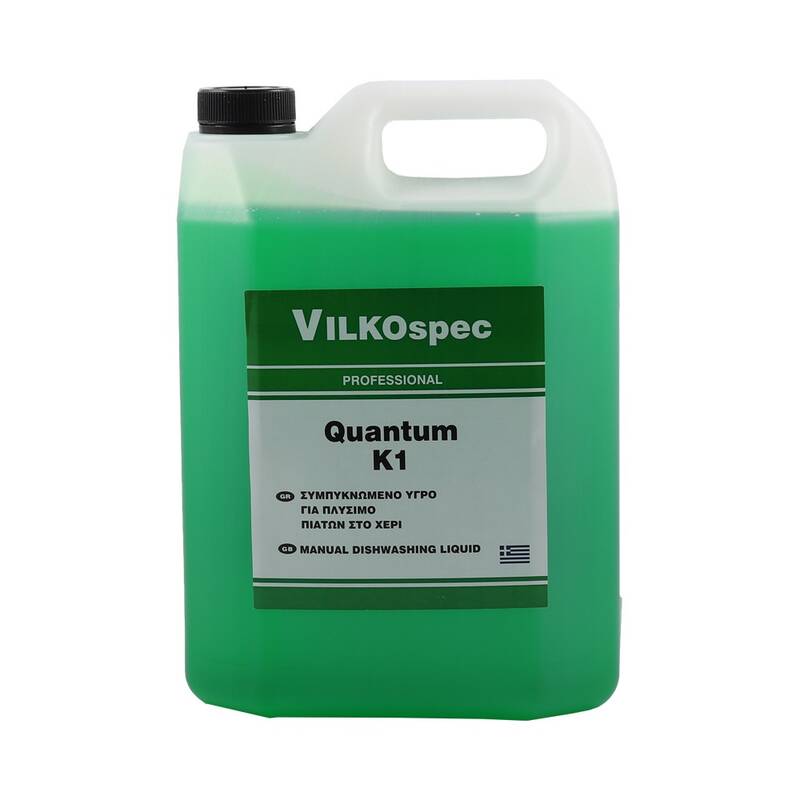 Το Quantum K1 είναι ένα ουδέτερο διαυγές, πράσινο και συμπυκνωμένο υγρό απορρυπαντικό κατάλληλο για το πλύσιμο όλων των σκευών της κουζίνας. Το προϊόν αποτελεί ιδανικό συνδυασμό αν ιονικών και μη ιονικών επιφάνειας δραστικών ουσιών οι οποίες διασπούν τα λίπη και τις ξεραμένες τροφές και κάνουν το ξέπλυμα εύκολο χωρίς να αφήνουν ίχνη.