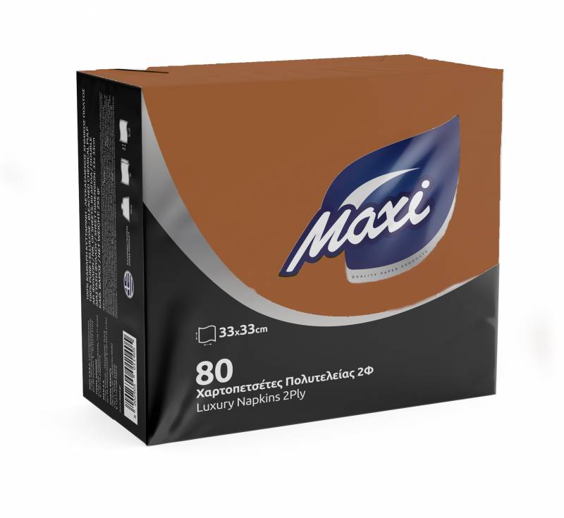 Maxi Χαρτοπετσέτες Πολυτελείας 33x33 Καφέ (Kraft)