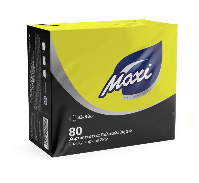 Maxi Χαρτοπετσέτες Πολυτελείας 33x33 Κίτρινες