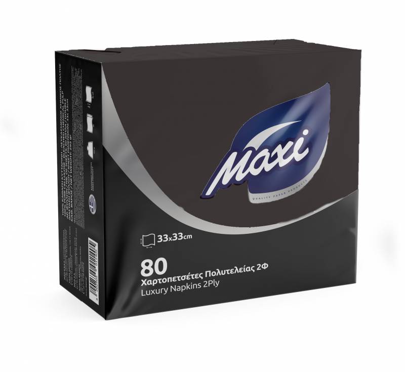 Maxi Χαρτοπετσέτες Πολυτελείας 33x33 Μαύρες
