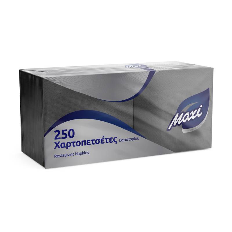 Χαρτοπετσέτες Εστιατορίου απο την Maxi. Μαλακές & απορροφητικές επαγγελματικής χρήσης, μαύρες γκοφρέ.