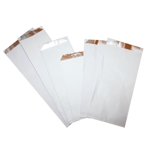 Σακουλάκι χάρτινο λευκό με επένδυση αλουμινίου στο εσωτερικό,κατάλληλο για τρόφιμα. Ιδανικό για ψητοπωλεία και εστιατόρια.